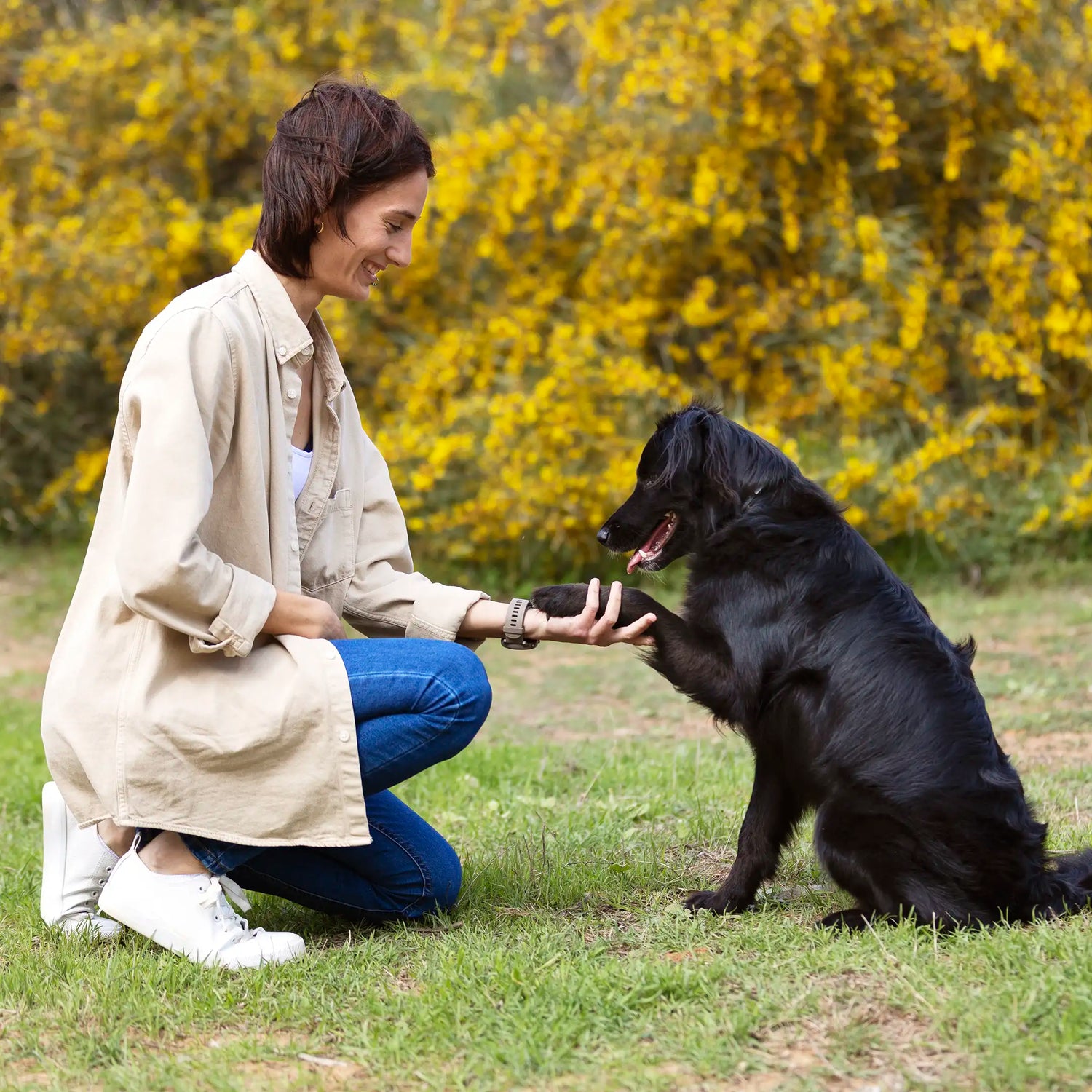 Vi följer en tydlig femstegsmodell: först testas hundens lämplighet, sedan varvas teori och praktik på gården med övningar i din hemmamiljö. Under hela processen får du personlig coachning, noggrann uppföljning och ett slutprov som säkerställer att ekipaget lever upp till alla krav.