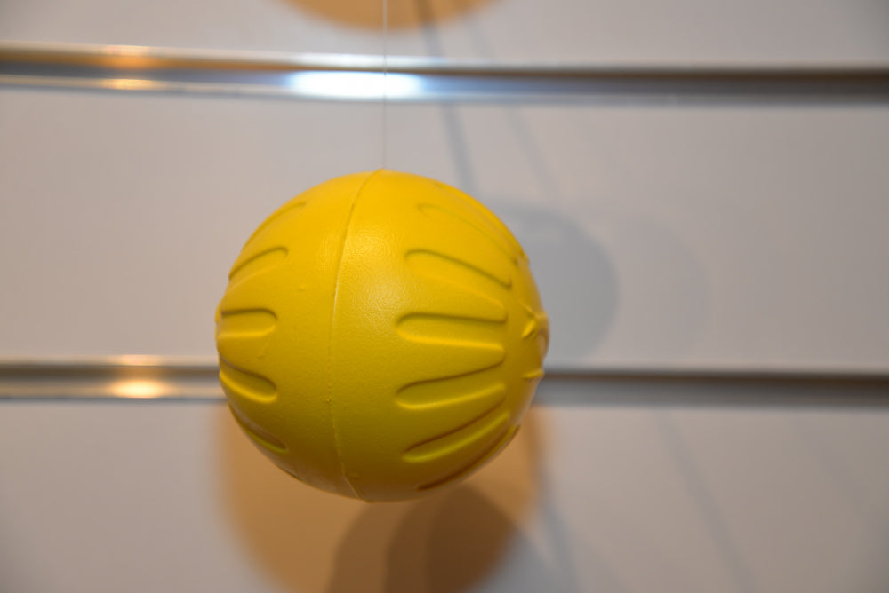 En boll som flyter. Den är av materialet silicon som gör den tålig och lite mjuk.