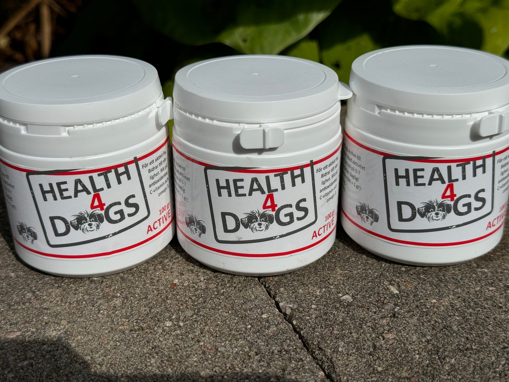 Health4Dogs Active är ett naturligt kosttillskott framtaget för att främja optimal hälsa och prestation hos aktiva hundar. Produkten innehåller en kraftfull kombination av nyponextrakt och grönläppad mussla, rik på antioxidanter, C-vitamin, omega 3 och naturliga ämnen som stödjer ledhälsa och rörelseförmåga. Perfekt för hundar med hög aktivitetsnivå eller äldre hundar som behöver extra stöd.
